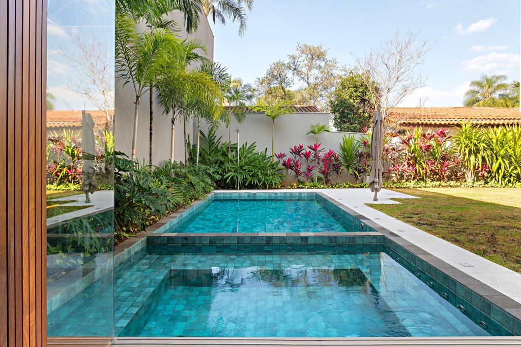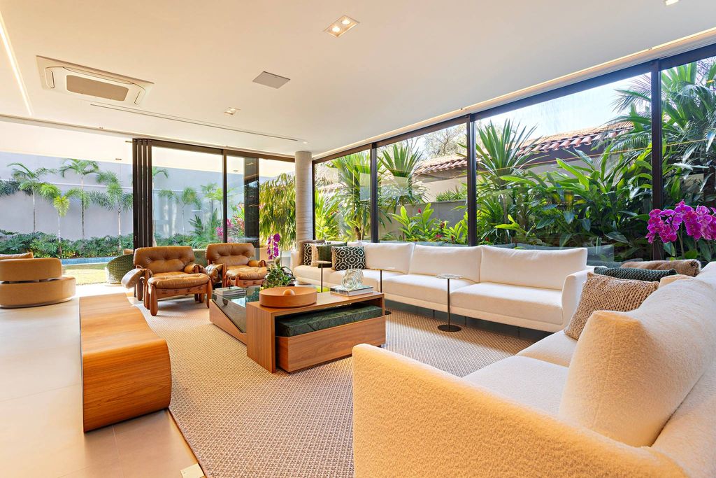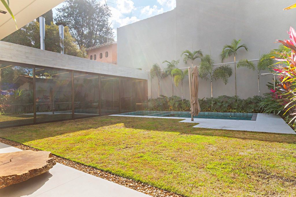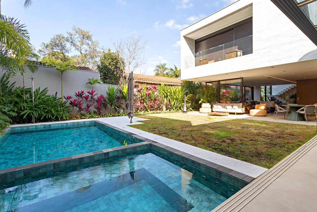 Localizada em uma rua tranquila e arborizada no Alto de Pinheiros, esta residência de três pavimentos leva a assinatura da arquiteta Simone Mantovani e apresenta projeto que valoriza a integração entre os ambientes, com grandes superfícies envidraçadas e iluminação natural. O hall social conta com pé-direito duplo e porta pivotante de seis metros, dando acesso ao living integrado à sala de jantar e ao terraço voltado para o jardim com piscina e paisagismo tropical. A área externa inclui espaço gourmet com churrasqueira, grelha argentina e equipamentos profissionais. A casa dispõe ainda de sauna, sala de home theater e adega climatizada com capacidade para até 800 garrafas. A cozinha é planejada, com marcenaria sob medida e eletrodomésticos importados. No pavimento superior, um escritório é acessado por elevador panorâmico que atende todos os andares, inclusive a garagem. São cinco suítes com armários planejados e projeto luminotécnico. A residência conta com sistema de automação para som, iluminação e energia solar.